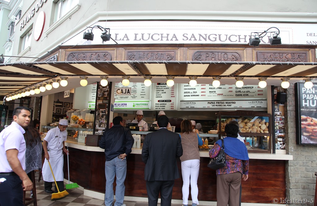 Peruvian Sandwiches – Sanguche (or sandwich) is a big part of Peruvian food and there are numerous Sanguerias around Lima offering different sandwiches in many different shapes and flavors. As we waited at a corner for the street light to turn green, we saw La Lucha Sangucheria, a sandwich shop with a line of people at the front. Curious, we went and got one to try. It turns out that this is one of the most popular places to eat in Lima; we totally lucked out.