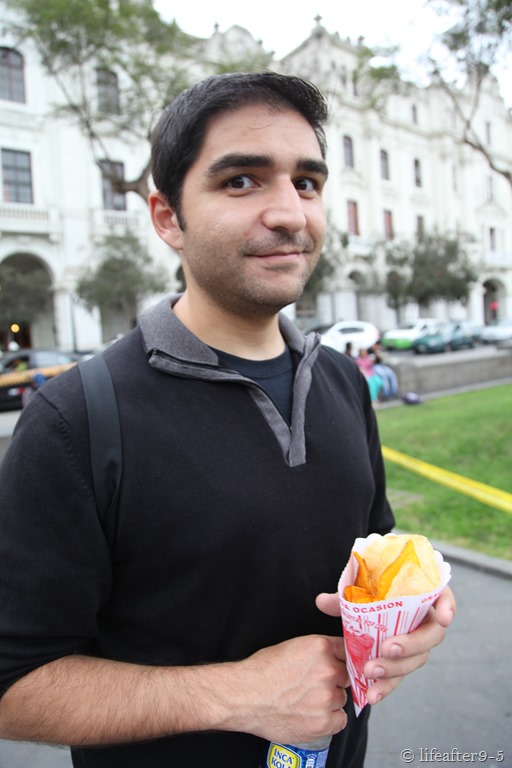 Street Snacks – There are a large assortment of carts selling street snacks in Lima, ranging from chips to pineapples to quail eggs, a local favorite. For a Sol, you can get a small cone filled with crispy potato, plantain and yam chips that was freshly made. And for another Sol, you can get yourself a bag of quail eggs. After a full day of walking around Lima, we were hungry, so we tried both the chips and the quail eggs. These are great when you have the munchies because they are small and perfect for sampling but won’t ruin your appetite for dinner.