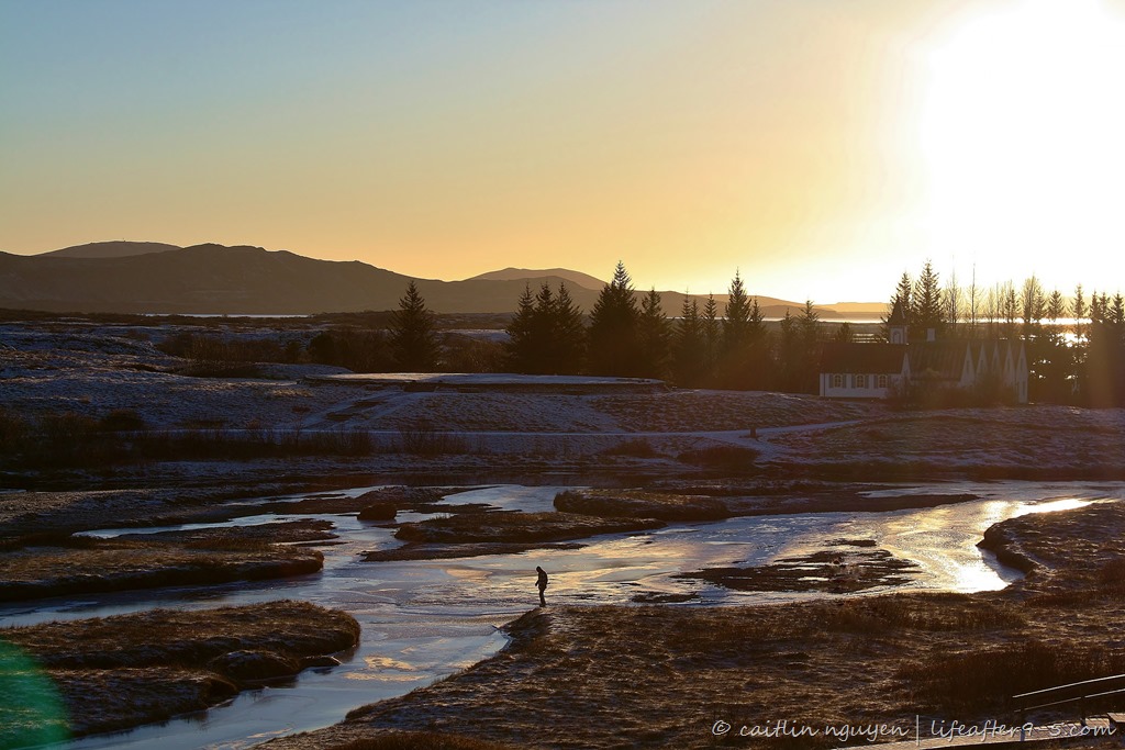 Aside from it’s historical significance, Thingvellir is also the land of many dramatic landscapes. Walking through the park, you can clearly see the rocky cliff of the largest exposed continental rift between the North American and Eurasian plates. This picture is of the frozen Oxara river in the heart of Thingvellar. The tundra landscape was as desolate as it was breathtaking. In late November, winter here is well under way, and we had to cover up in many layers just to stay warm.