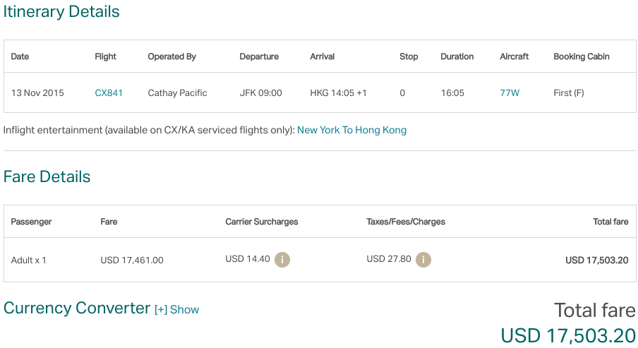 Cathay flies a 777-300 direct from JFK to HKG. It’s a 16 hour flight, in fact it’s #10 on the list of longest commercial flights in the world; but finding 2 seats in first class was a bit tricky when there are only 6 seats available on each flight. The process involves a bit of planing, research, and time, but trust me, its worth it. Below are the steps we took: