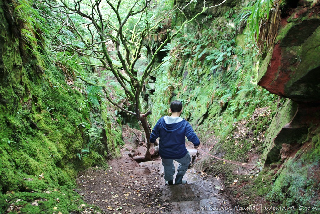 To get down to the bottom, you have to find the Jacob’s Ladder – perilously steep stone steps that are carved into the Earth. It’s on the left side, hidden by the foliage and very easy to miss. These 200 year old steps were muddy, wet, and slippery. I clung desperately to the ropes as I made my way down the uneven steps, taking care not to slip.